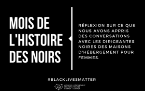 Pendant le Mois de l’histoire des Noirs, j’ai eu le privilège de rencontrer en ligne quelques gestionnaires noires de maisons d’hébergement de partout au Canada. Je voulais avoir une discussion constructive sur les conditions de travail des femmes noires dans ce secteur et sur la manière dont les maisons peuvent mieux servir les femmes et les enfants noirs qui fuient la violence. En tant que nouvelle employée, je ne savais pratiquement rien des efforts déployés pour appuyer, connecter et éduquer les femmes noires en matière de VFF. Cette situation peut s’expliquer par le manque de recherches sur la violence faite aux femmes noires. Sachant cela, je me suis penchée sur les données recueillies par HFC lorsque nous avons distribué les fonds fédéraux COVID-19 aux maisons d’hébergement et je me suis appuyée sur les expériences des femmes travaillant sur le terrain